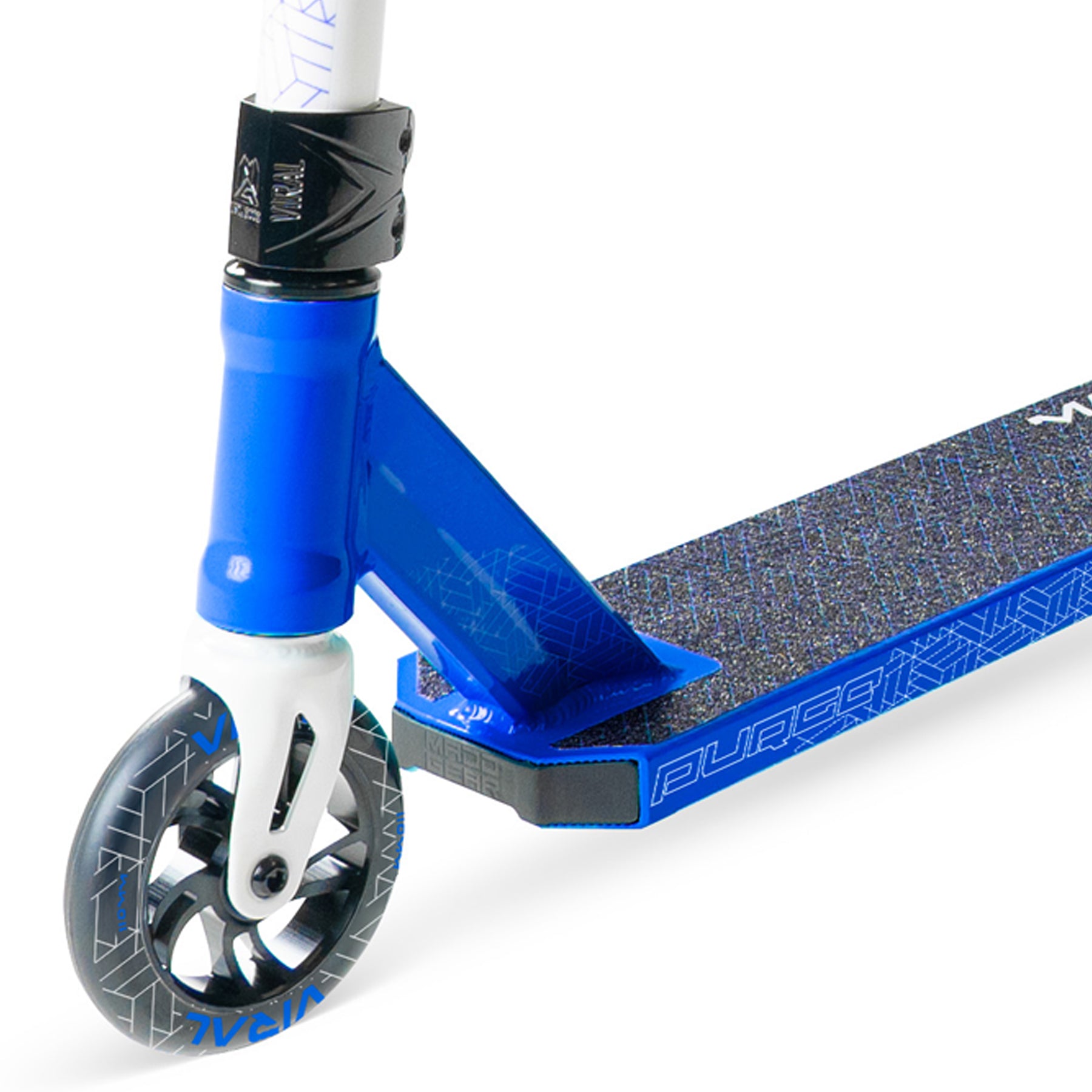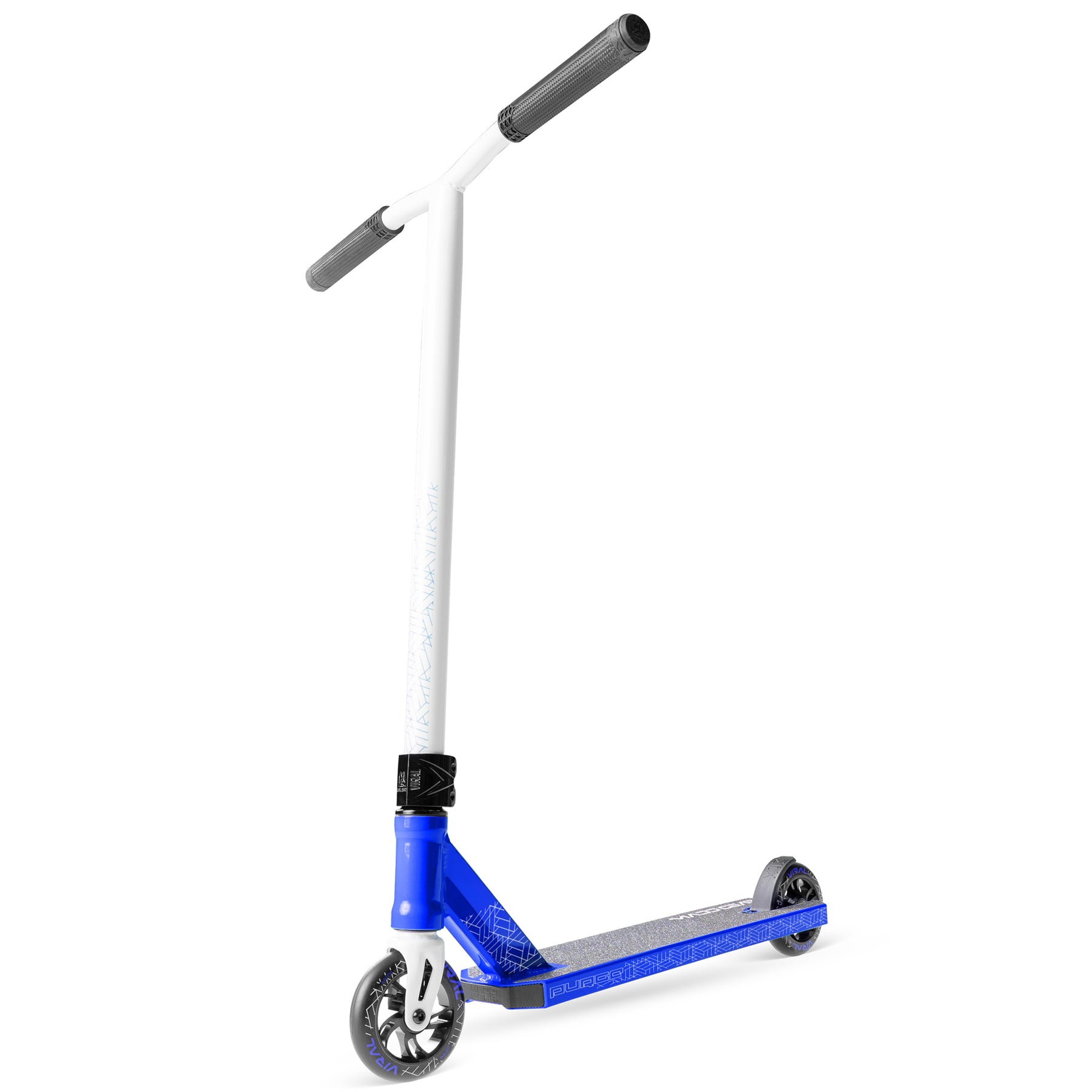 Mit seinem kompakten, 4,5 Zoll breiten Aluminiumdeck, 110-mm-Aluminiumkernrollen und einem 24 x 22 Zoll großen Low-Rise-T-Lenker bietet der VIRAL PURGE PRO eine ausgewogene Geometrie für Street- und Park-Riding. Die Hochgeschwindigkeits-ABEC-11-Lager sorgen für ein sanftes Fahrgefühl, während der integrierte Steuersatz und die IHC-Stahlgabel die nötige Reaktionsfähigkeit für Grinds, Whips und Manuals bieten.