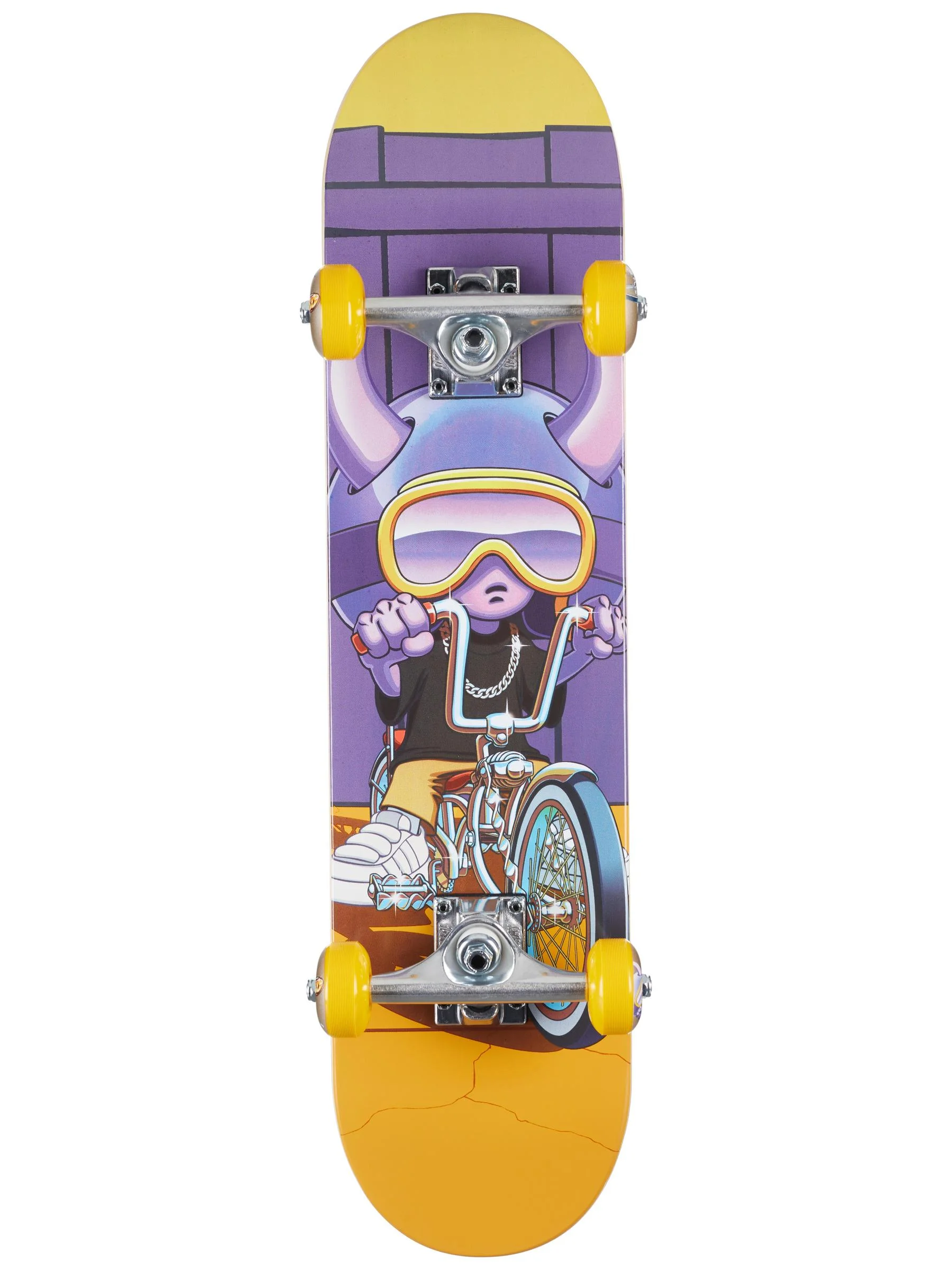 Das Speed Demon Lowider Soft Top Complete Skateboard (6,75 x 29 Zoll) verfügt über einen Soft-Top-Schaumstoffgriff anstelle des üblichen rauen Griptapes. Es ist sofort einsatzbereit.